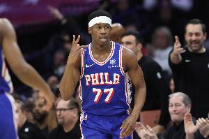 本场比赛,76人探花埃奇库姆出场40分钟21投8中,三分11中5、罚球3中2拿到23分5篮板3助攻2抢断1盖帽,正负值-14。