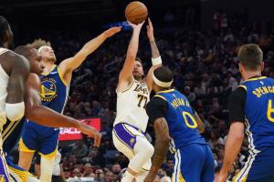 体育资讯3月1日讯 NBA常规赛,湖人在客场129-101大胜勇士。
